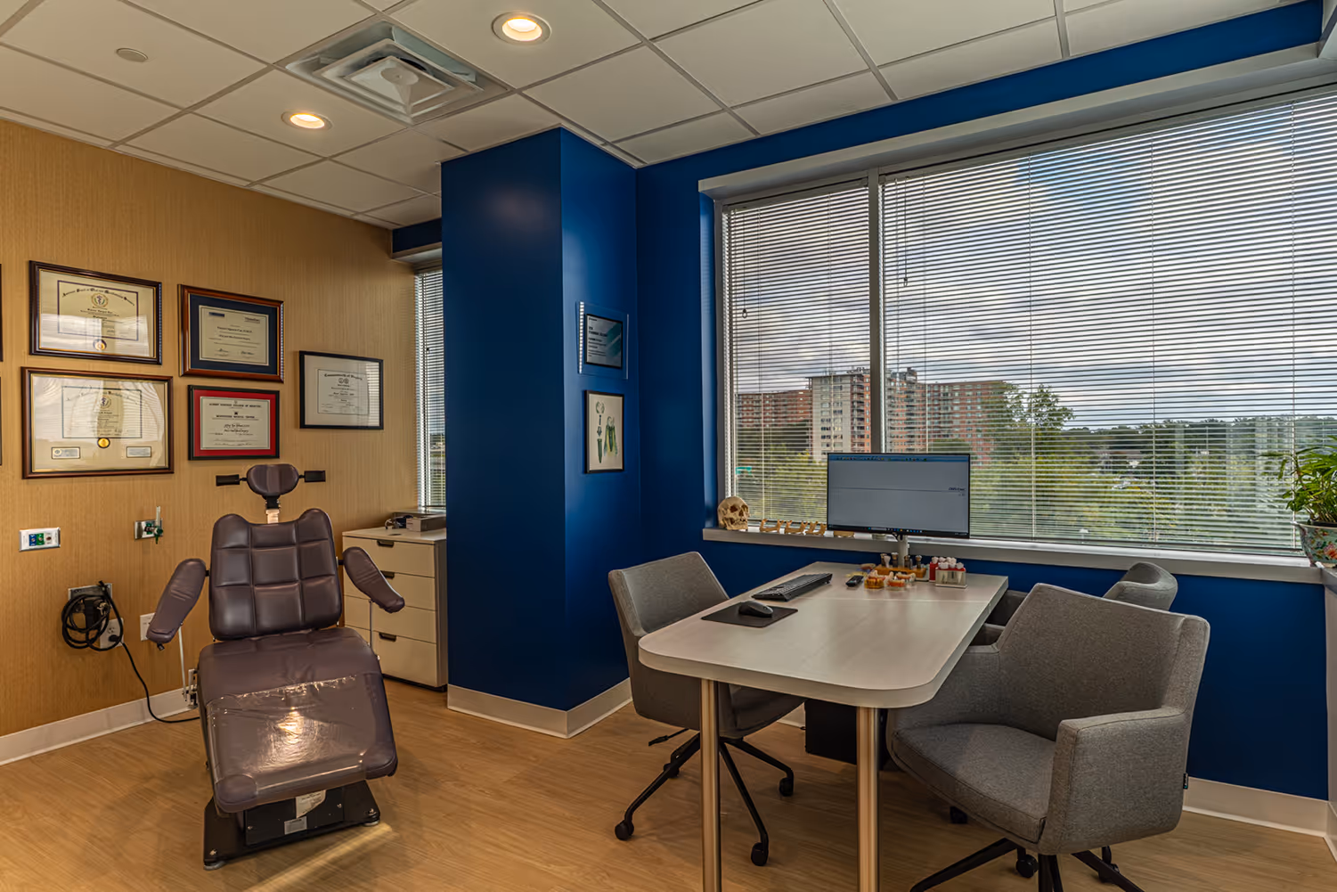 From the moment you step into our spacious and inviting waiting room, you’ll notice the difference. Our new office includes a dedicated work area for friends and family, providing a quiet and comfortable place to stay productive while they wait. Soft lighting, comfortable seating, and a warm atmosphere help set the tone for a positive experience during your visit.